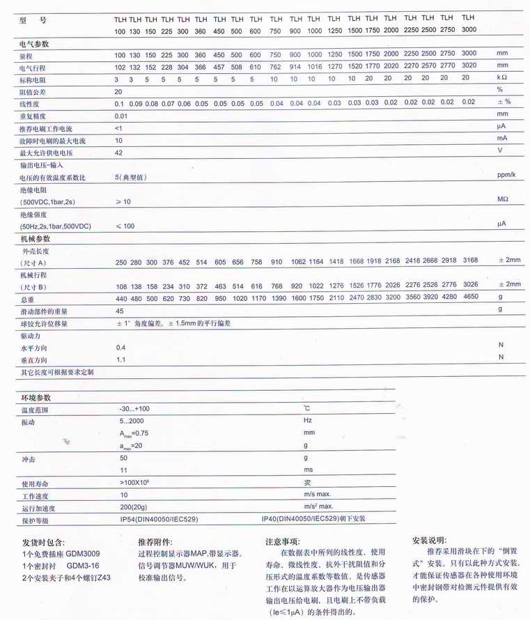 直線位移傳感器,量程可達(dá)3000mm 直線位移傳感器特點(diǎn): 無(wú)桿設(shè)計(jì) 球鉸可避免側(cè)向力 使用壽命長(zhǎng)-運(yùn)行次數(shù)超過(guò)100*10^6 非線性度小 分辨率高于0.01mm 很高的運(yùn)行速度 DIN 430650標(biāo)準(zhǔn)插頭和插座 防護(hù)等級(jí)IP54面向下安裝 直線位移傳感器說(shuō)明: 外殼:鋁合金,經(jīng)陽(yáng)極氧化處理 安裝:可調(diào)節(jié)固定支架 滑動(dòng)部件:內(nèi)嵌有塑料的鋁材 連接器:球鉸,由一個(gè)淬硬的鋼球和彈簧、淬硬鋼板組件組成 電阻元件:導(dǎo)電塑料 電刷組件:貴金屬多觸電電刷,帶彈性阻尼 電氣連接:DIN3650標(biāo)準(zhǔn)4極插座