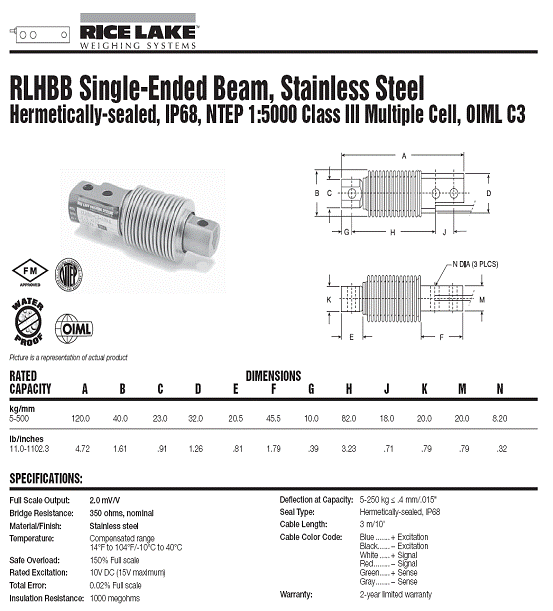偏移量:5-250 kg ≤ .4 mm/.015"