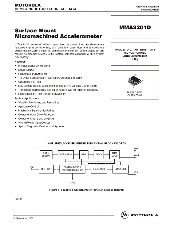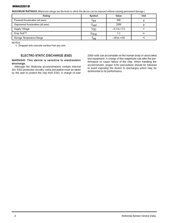 | 產(chǎn)品名稱:MMA2201D 加速度傳感器(accelerometer) |