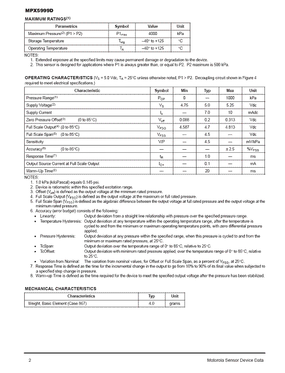 | 產(chǎn)品名稱:MPX5999D 氣壓傳感器(sensor) |