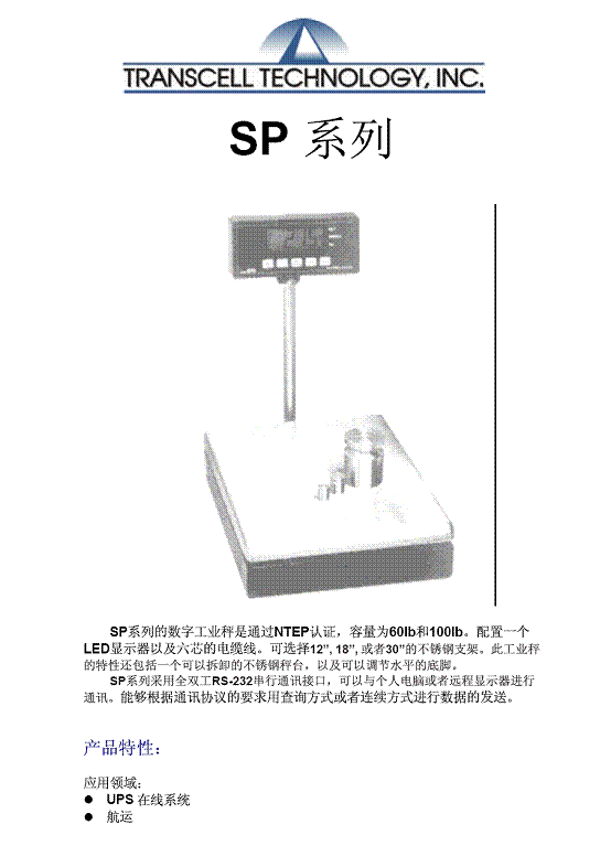 | 產品名稱:Transcell SP系列 工業(yè)秤(scales) |