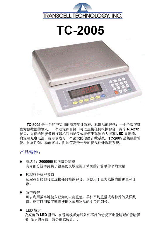 | 產(chǎn)品名稱:Transcell TC-2005 計數(shù)秤(scales) |