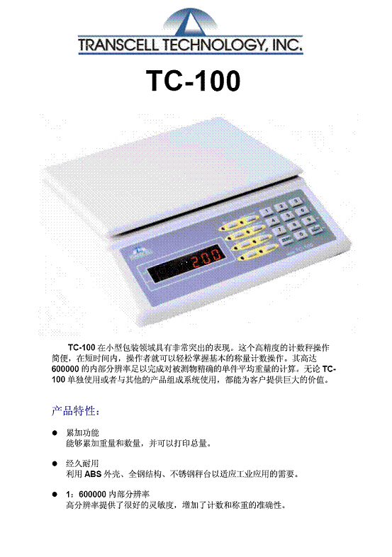 | 產(chǎn)品名稱(chēng):Transcell TC-100 計(jì)數(shù)秤(scales) |