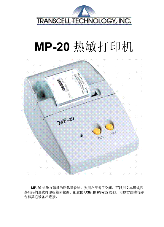| 產(chǎn)品名稱:Transcell MP-20 熱敏打印機(jī)(printer) |