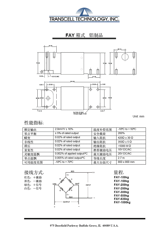 | 產(chǎn)品名稱:Transcell FAY 箱式稱重傳感器(load cells) |