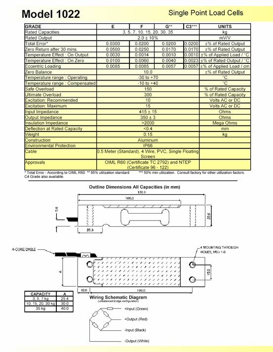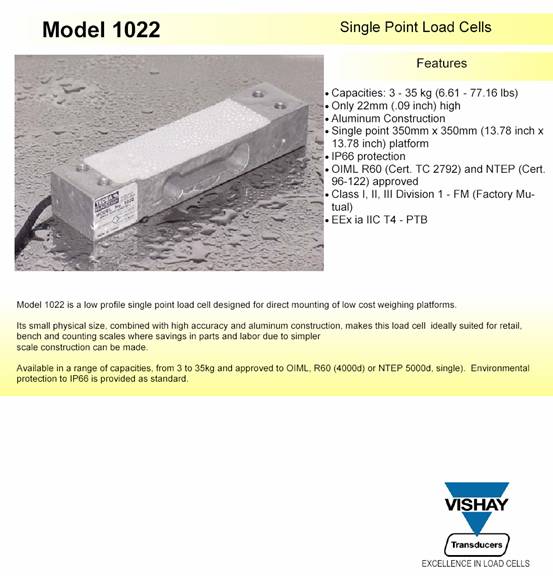 描述:1022是為低成本稱(chēng)重秤設(shè)計(jì)的單點(diǎn)式傳感器。其緊湊的外形尺寸以及較低的成本適用于零售秤、計(jì)價(jià)秤和計(jì)數(shù)秤。