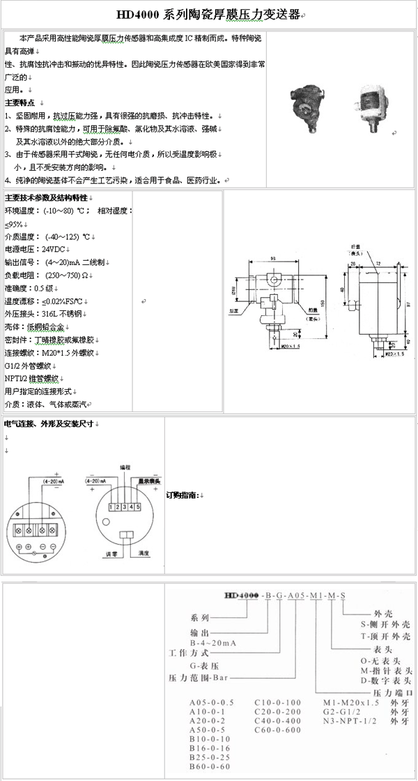 | 產(chǎn)品名稱:HD4000系列 陶瓷厚膜壓力變送器(pressure sensor) |